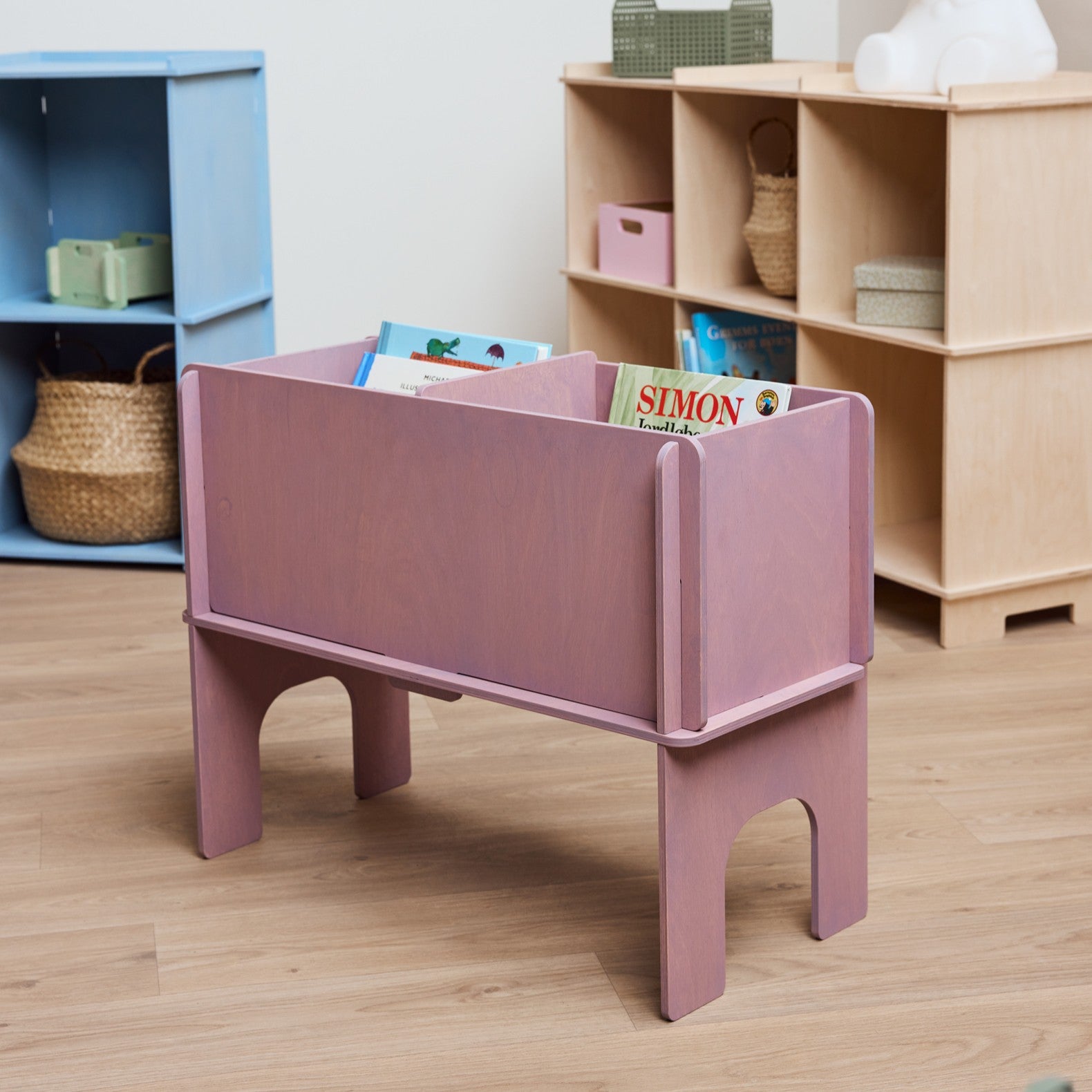 Med vores bog-/opbevarings kasse Albert, kan du nu få styr på bøgerne, og skabe børnenes eget lille mini-bibliotek derhjemme. Vores erfaringer viser, at der helt naturligt bliver læst mere højt derhjemme, hvis bøgerne er let tilgængelige.