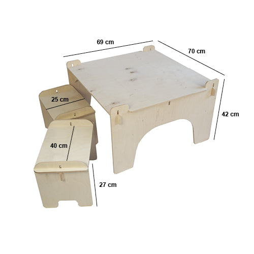 Med sin robuste og stabile konstruktion er bordsættet designet specielt til børn. Det er smart og praktisk, og vigtigst af alt, sikkerhedstestet for at give forældre ro i sindet.
