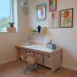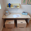Anton er et bredt og stabilt skrivebord, designet til at give plads til både kreative projekter, byggeleg og koncentrerede stunder. Bordet kan nemt trækkes ud fra væggen, så legen kan udfolde sig hele vejen rundt.
