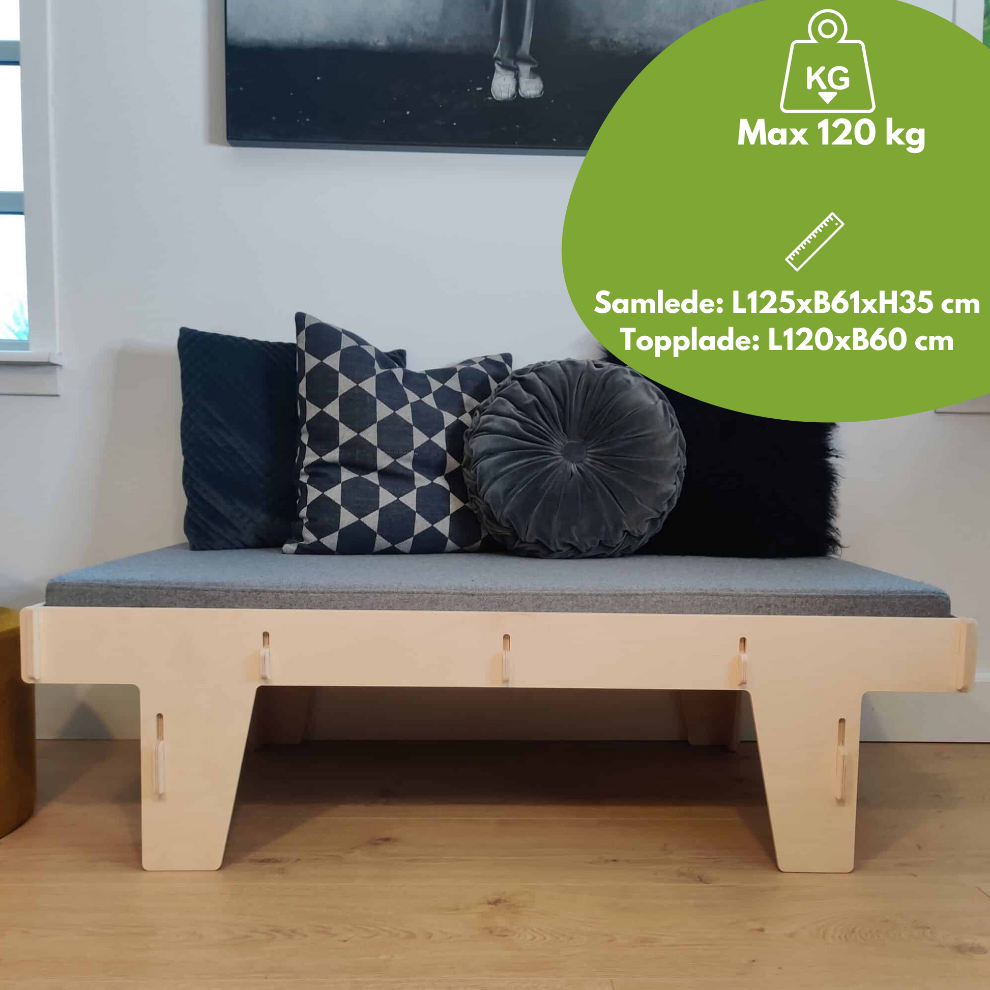 Vores daybed eller briks er et utroligt alsidigt møbel, som inviterer til samvær og hygge. Det er nemt at flytte rundt og skaber en ekstra siddeplads lige der, hvor behovet opstår.