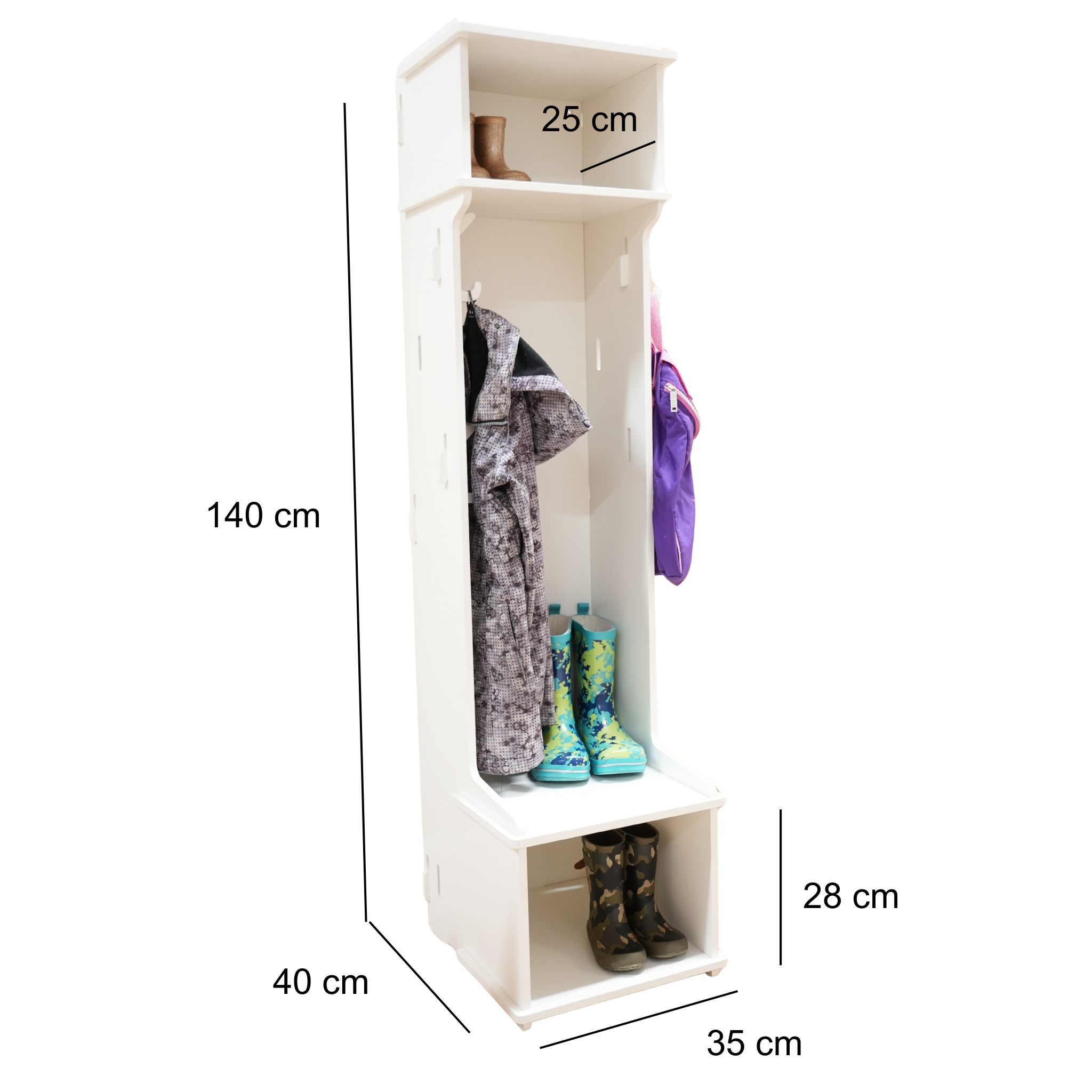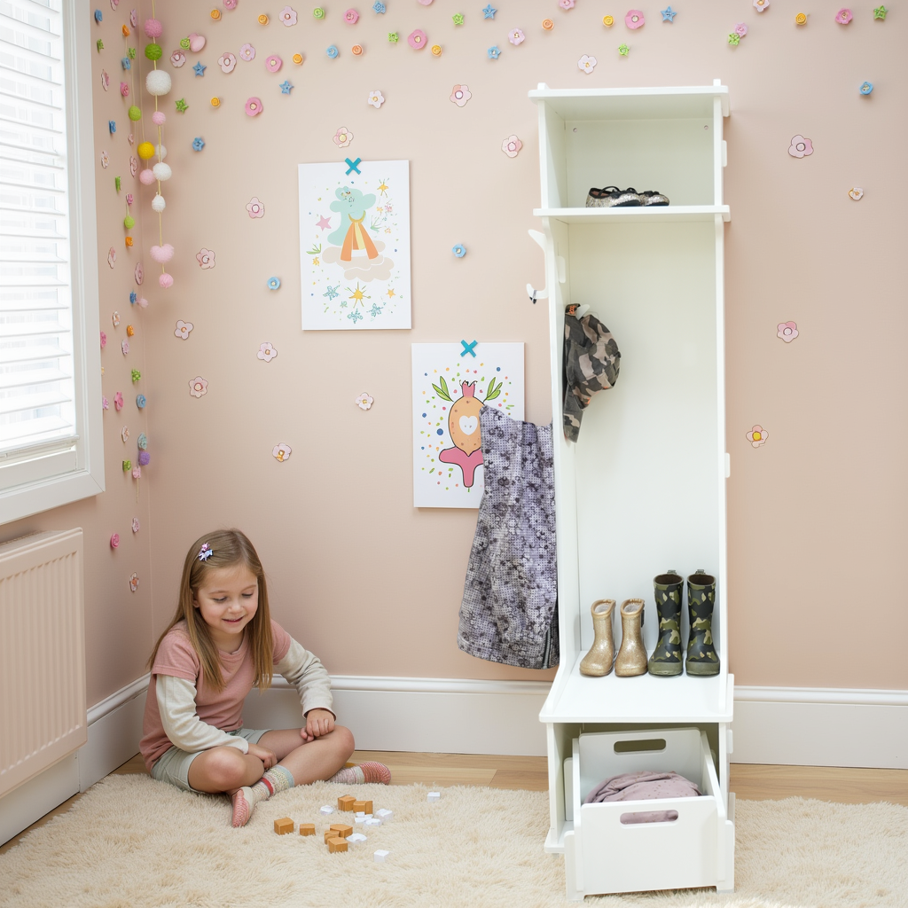 - Smart og praktisk design: Optimeret til at holde styr på børnenes overtøj og tilbehør.