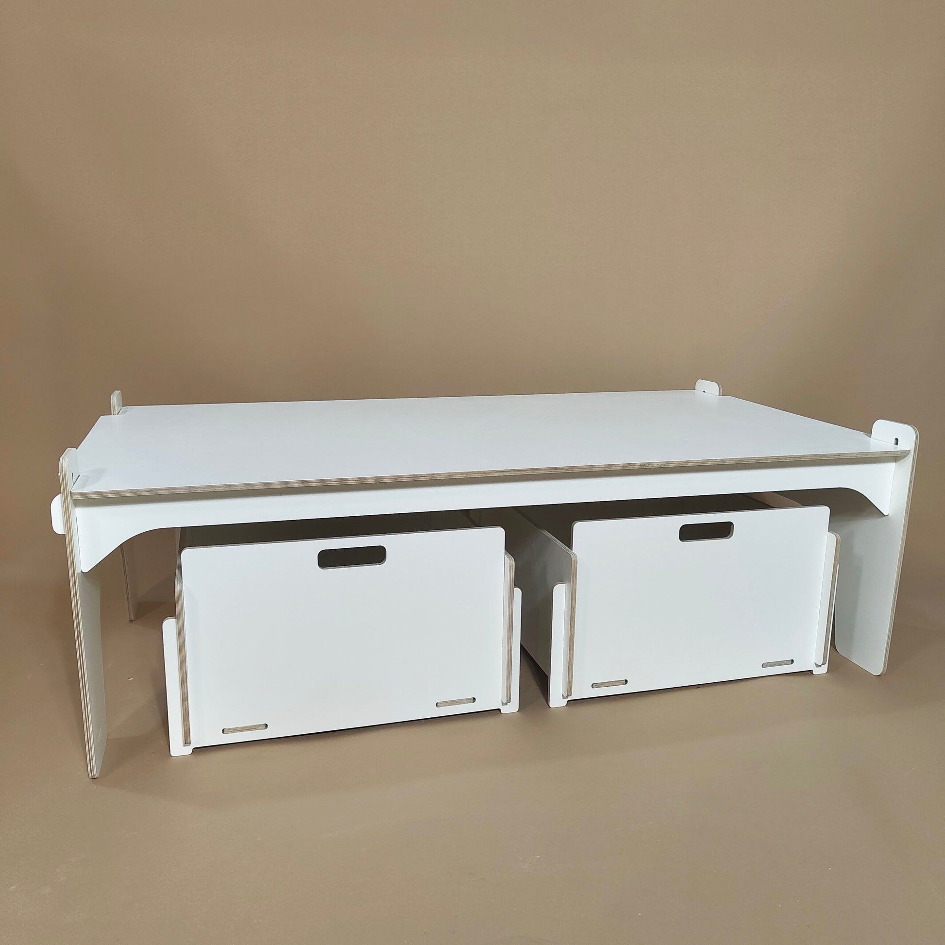 Du vil elske vores kombisæt, der forener det store og rummelige legetøjsbord Bjørn med de smukke, store opbevaringskasser Stine i træ.