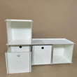 Vi har designet et multifunktionelt møbel, der er perfekt til børneværelset – Carla inkl. 2 Viktor kasser. Dette alsidige møbel kombinerer opbevaring, leg og hygge i én smart løsning.