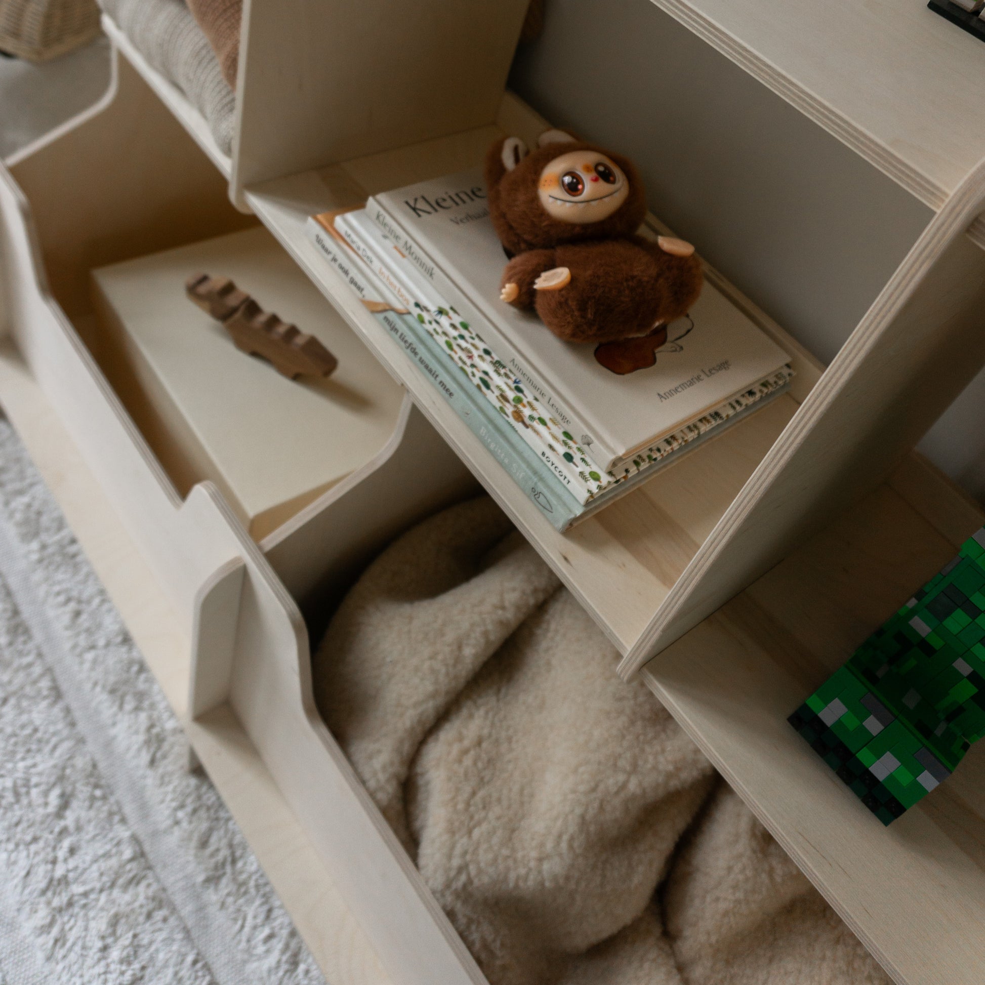 Her kan små hænder (fra 1-6 år) selv finde yndlingsbøgerne, krammebamsen eller de sjove klodser – og lige så let pakke det hele væk igen. Saxo hjælper med at skabe en hyggelig, organiseret ramme om legen, hvor barnet både får frihed og overblik.