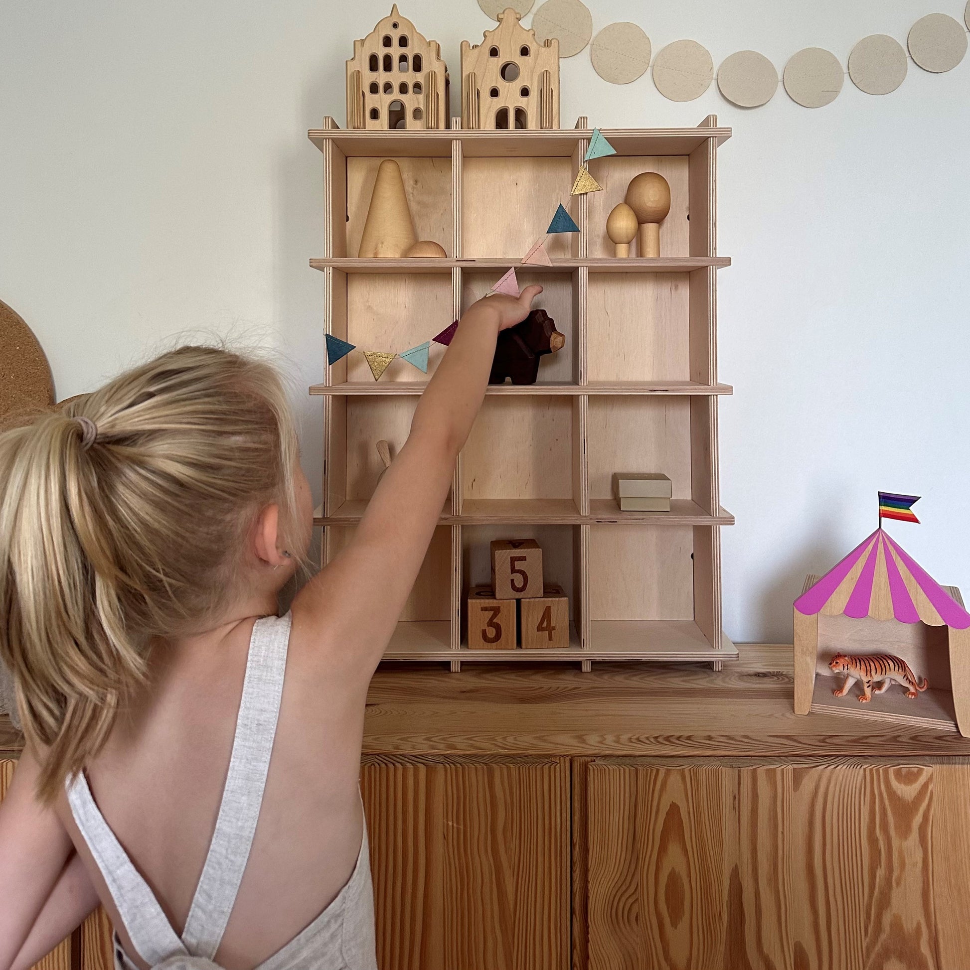 - Opbevarings af børnenes små soldater, dyr, biler osv.