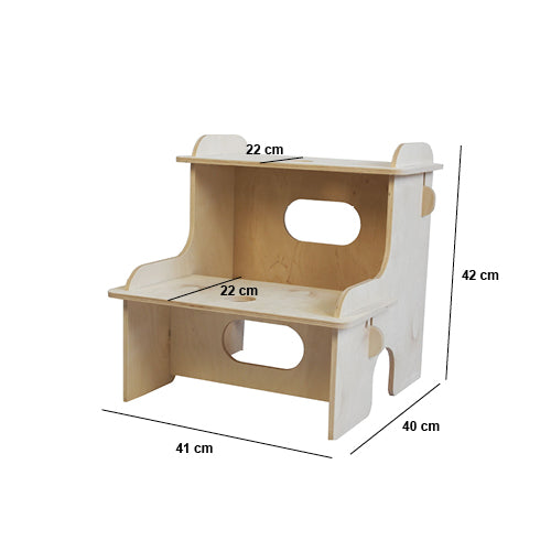 Vores populære Mia-skammel er både praktisk og alsidig. Med sine brede trin giver den små børnefødder en sikker og stabil platform, perfekt til at hjælpe med madlavningen eller nå håndvasken.