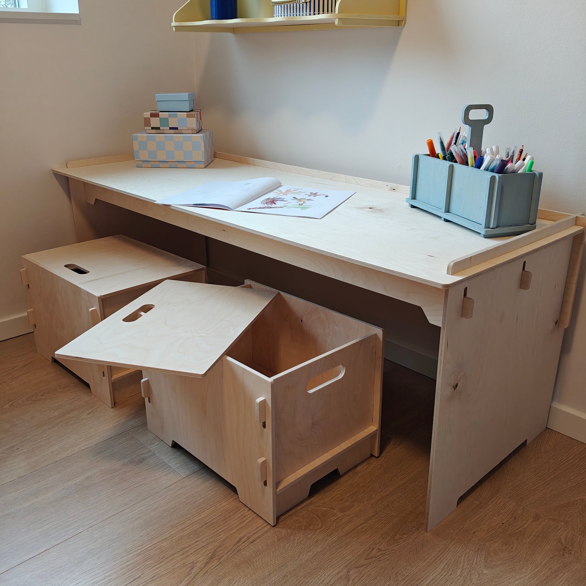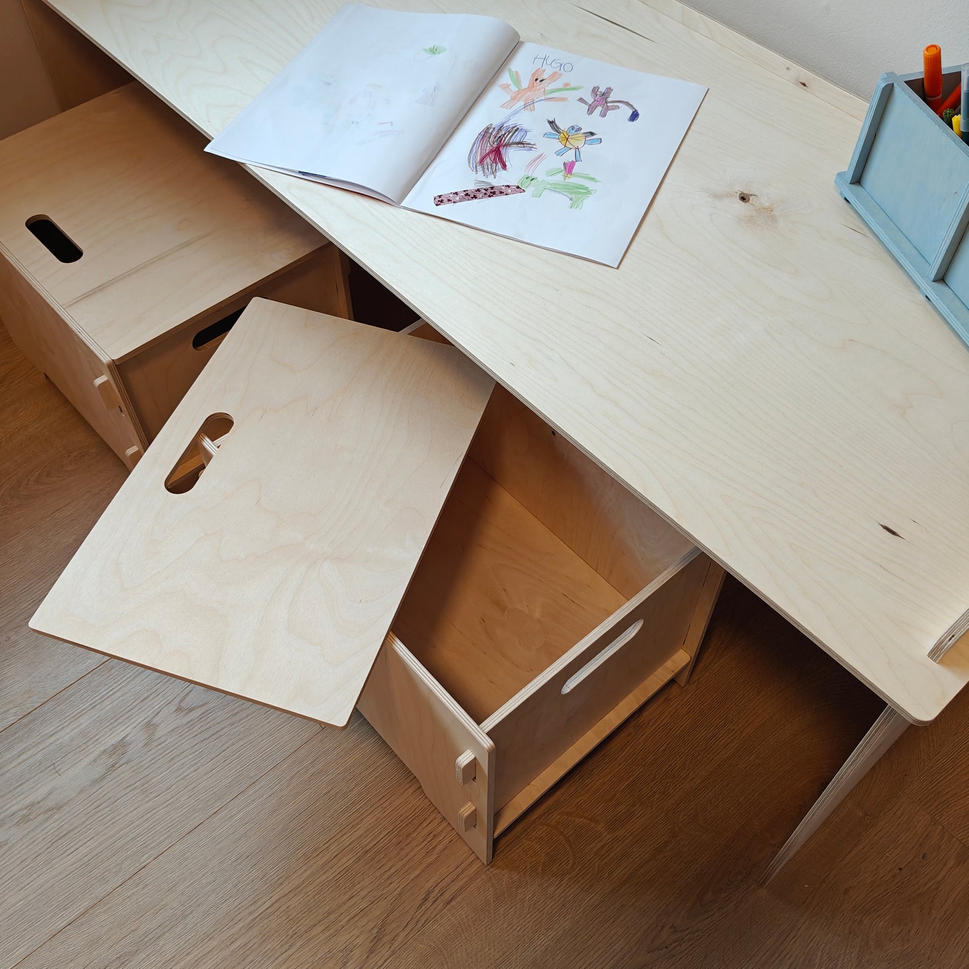 Frida er et lille møbel med stor personlighed – klar til at følge barnet gennem hverdagens leg, læring og kreative øjeblikke.